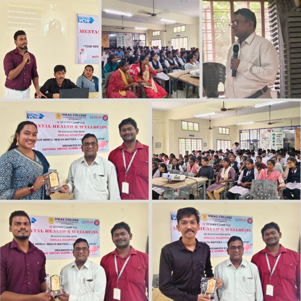 The National Service Scheme (NSS) at Vikas College of Engineering & Technology (VCTN) organized an insightful Workshop on Mental Health & Wellbeing in association with Indlas Hospitals, to raise awareness about emotional wellness and the importance of nurturing a healthy mind.