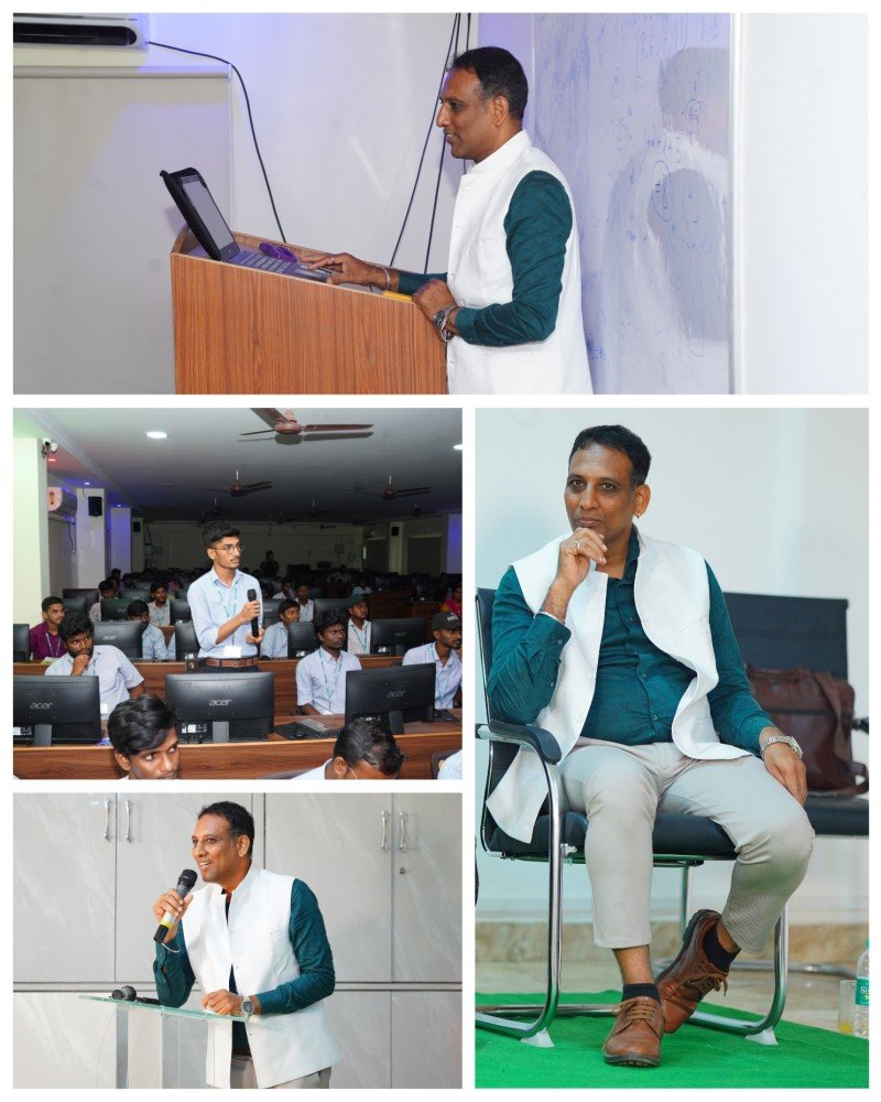 Dr. Md Abdula Rasheed from Organo Eco Habitats delivered a session on building purpose-driven careers and fostering sustainable leadership. He walked students through placement-ready skills and essential qualities of future leaders. In a remarkable gesture, Dr. Rasheed offered to mentor 15 students, providing an invaluable opportunity for engineering students to learn from a leader with over two decades of experience.